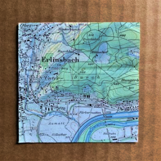 Original Kartenausschnitte von verschiedenen Landeskarten der Schweiz. Jede Karte ist somit ein Unikat. Auf der Rückseite beschriftet mit Kartennummer und Jahreszahl.