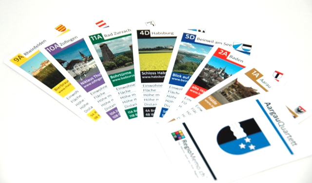 Mit den RegioQuartett-Spielen lernen Sie Ihren Kanton, die Schweiz oder Europa besser kennen. Wieviele Nachbarskantone hat der Kanton Uri? Ist die Distanz von Aarau nach Habsburg kürzer als nach Reinach?
